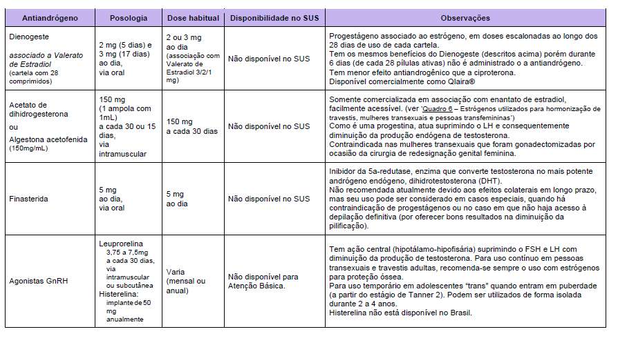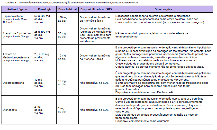 - Pessoas transfemininas (estrógenos/antiandrógenos).