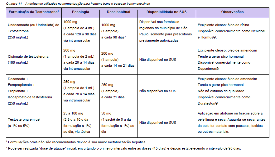 - Pessoas transmasculinas (andrógenos).